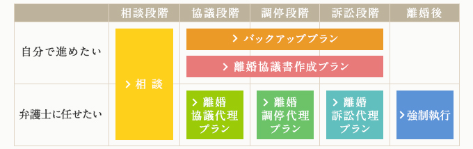 離婚協議代理プラン、離婚調停代理プラン、離婚訴訟代理プラン