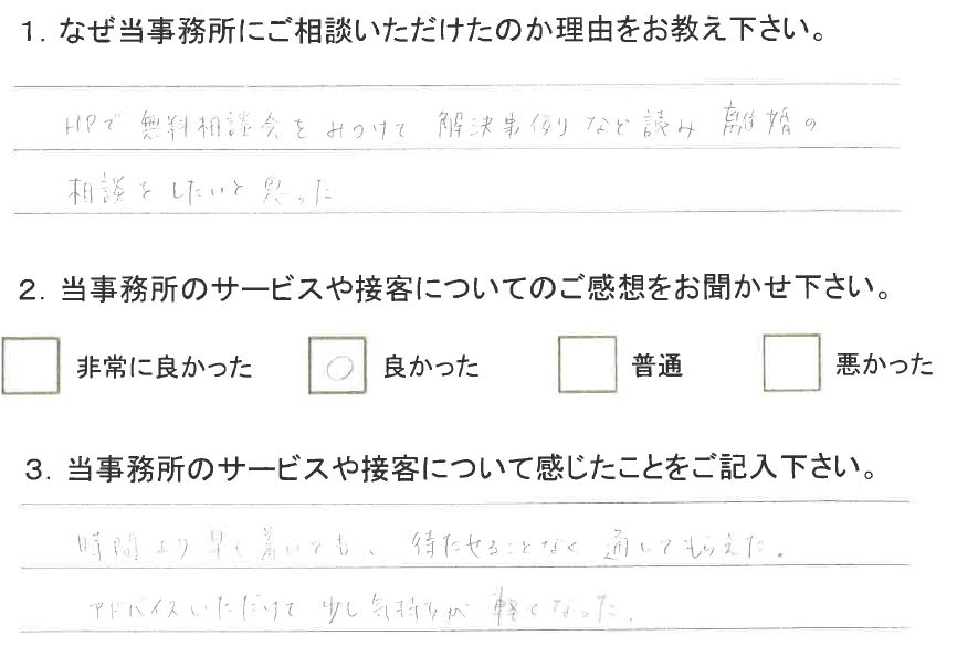 HPで無料相談会をみつけて、解決事例などを読み離婚の相談をしたいと思った。